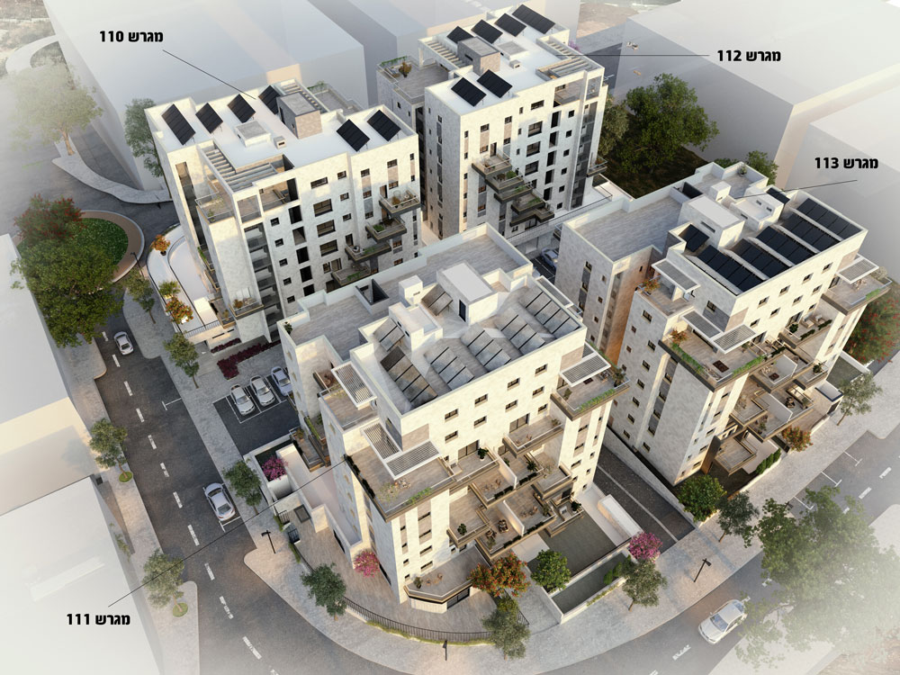 המתחם המרהיב כולל 104 יחידות דיור ב-4 בניינים מעוצבים, הממוקמים מעל קומת חניון משותפת, ומשלבים חזית מסחרית דינמית ותוססת שמביאה חיים ואווירה ייחודית.